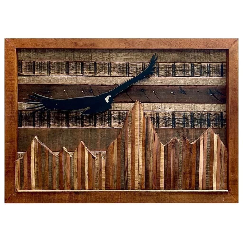 CON OTRA PERSPECTIVA es una obra que nace del encuentro entre arte y sustentabilidad. Elaborado con madera recuperada de antiguas construcciones, cada cuadro conserva texturas, marcas y cicatrices que cuentan su propia historia.