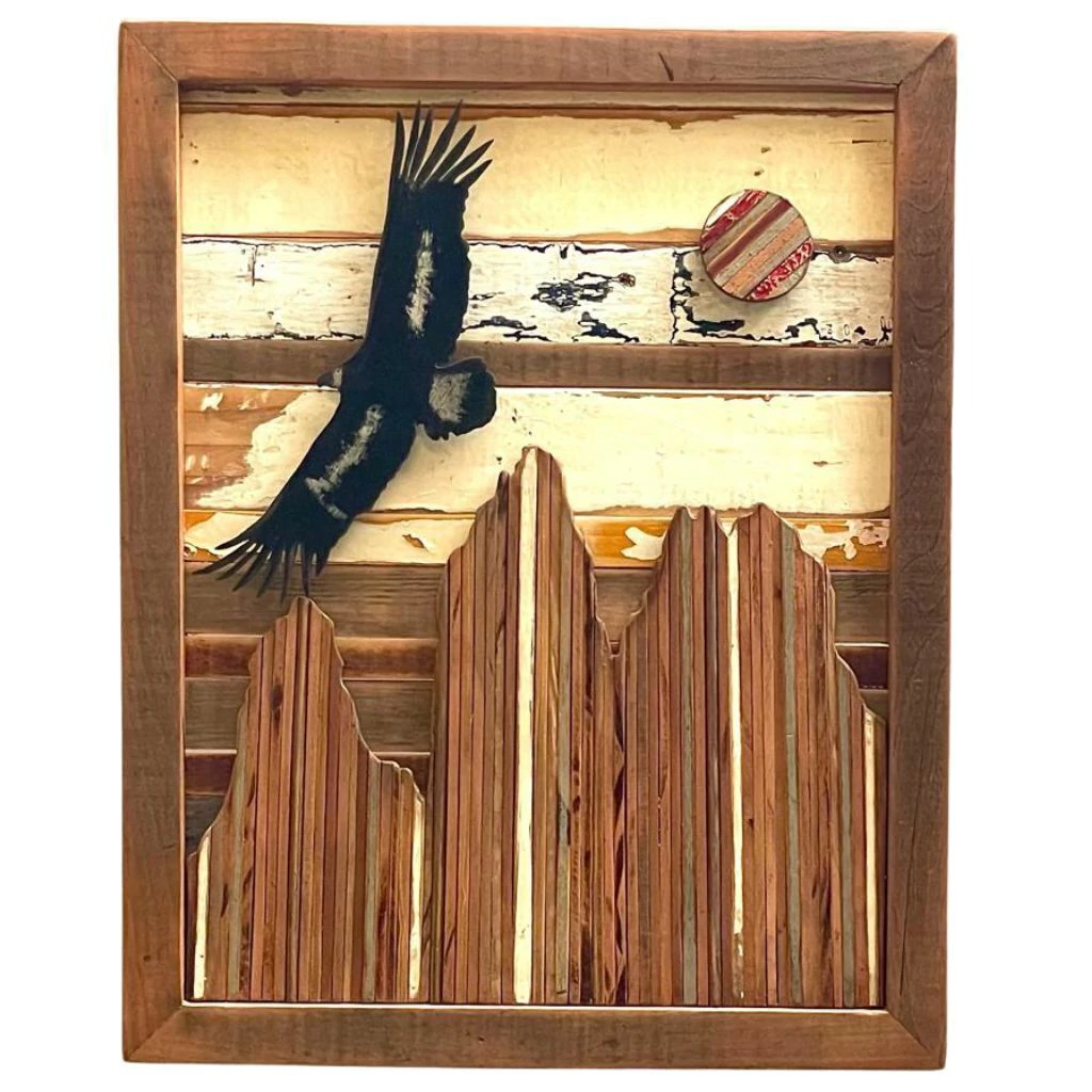 PATAGONIA IMNENSA es una obra que nace del encuentro entre arte y sustentabilidad. Elaborado con madera recuperada de antiguas construcciones, cada cuadro conserva texturas, marcas y cicatrices que cuentan su propia historia.